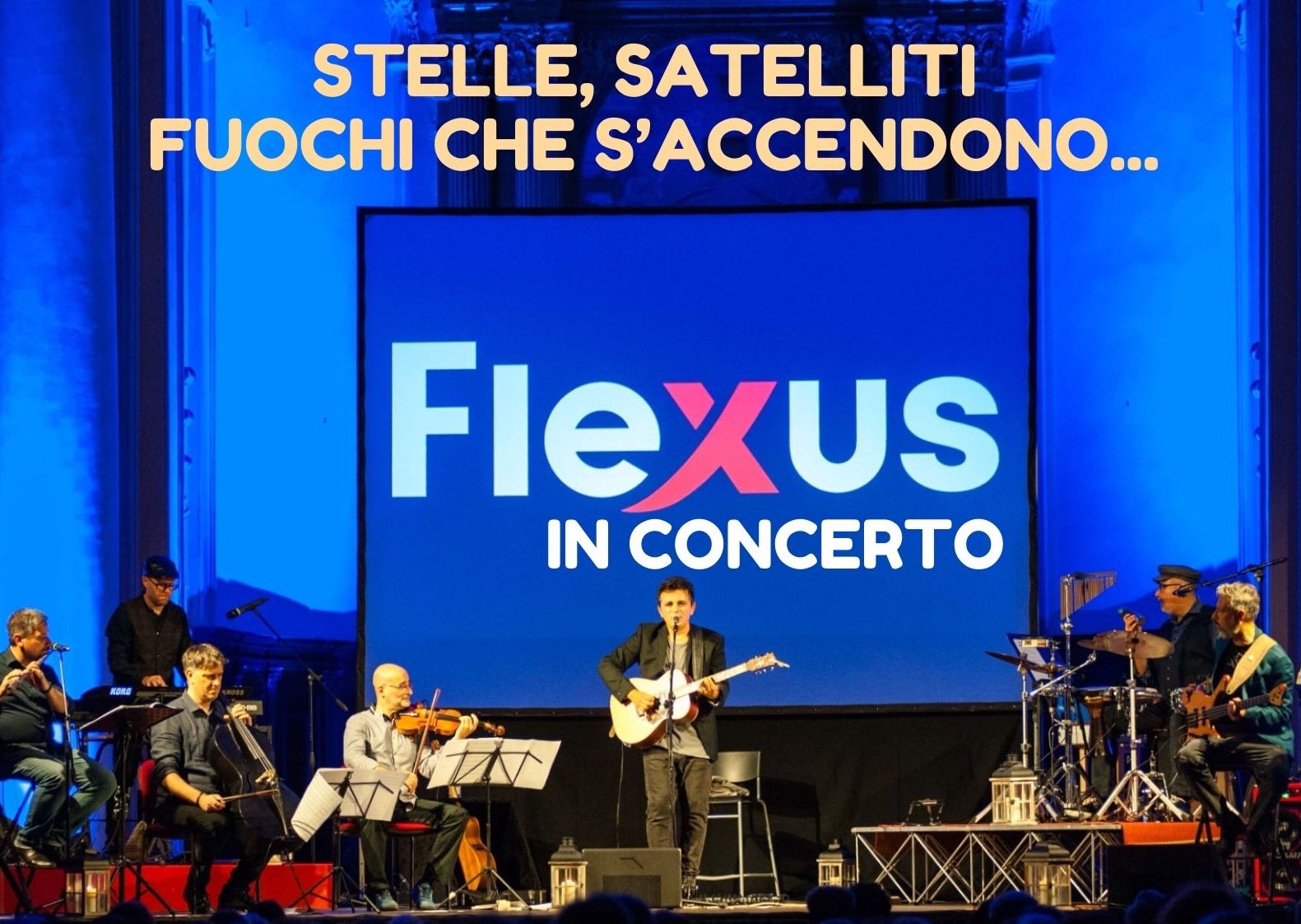 Flexus diventano una piccola orchestra arricchita di strumenti ad arco e a fiato, con una veste inedita che privilegia sonorità acustiche. Il concerto sarà presentato il prossimo 1 novembre alle ore 21 all’interno della suggestiva chiesa di San Pietro in Vincoli, Limidi di Soliera (MO). Satelliti, comete, lune e stelle saranno le grandi protagoniste di una scaletta che attraversa le nostre canzoni, alcuni capolavori della musica d’autore italiana fino ad arrivare ad alcune pagine di musica classica e colonne sonore.Gianluca Magnani (voce, chitarre), Enrico Sartori (percussioni) Rocco Malagoli (violino), Matteo Montanari (violoncello), Andrea Ceré (basso, contrabbasso), Pietro Rustichelli (flauto traverso), Davide Vicari (sax, pianoforte).Lo spettacolo è gratuito senza prenotazione, fino ad esaurimento posti.Vi aspettiamo per un concerto davvero speciale, costellato di brani senza tempo.