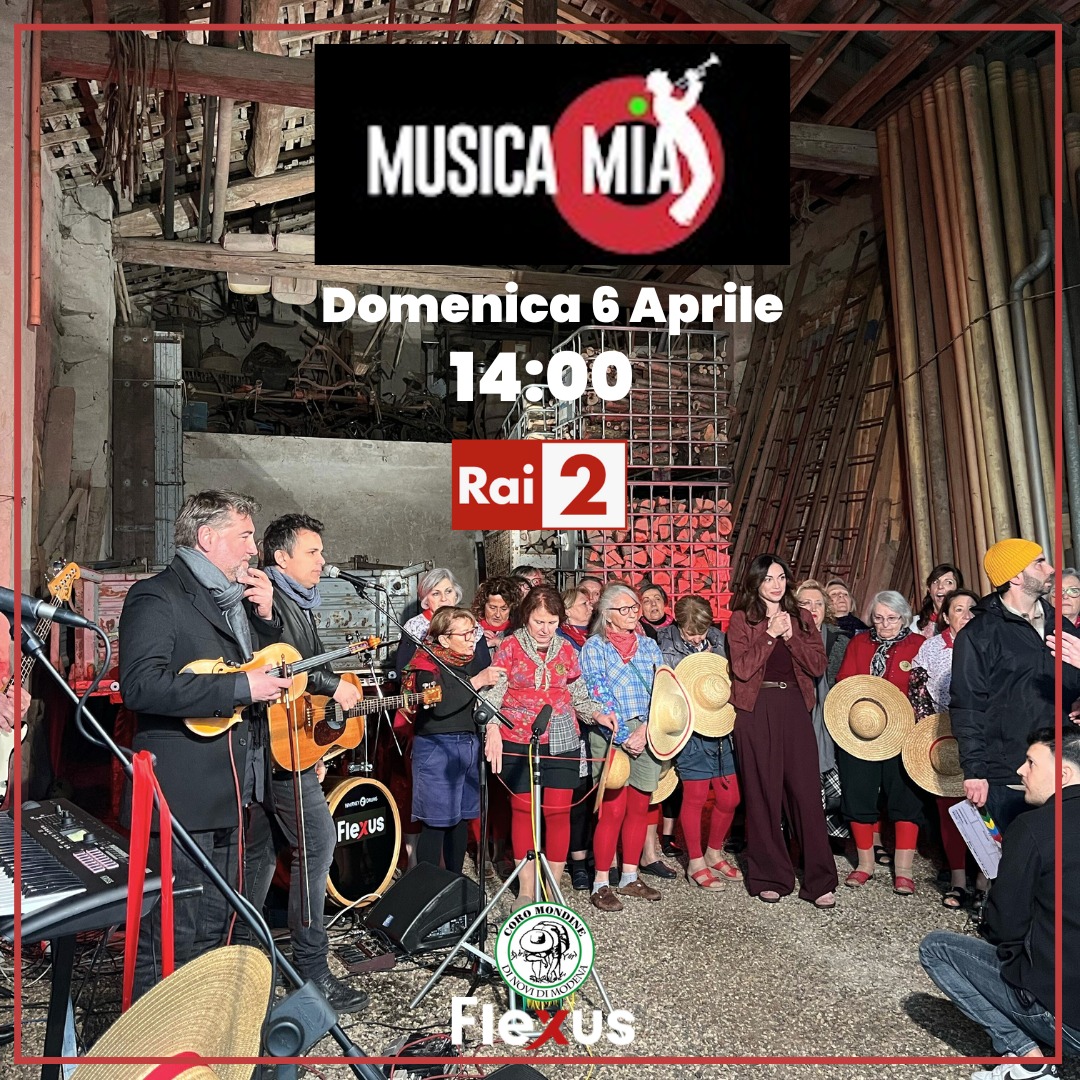 Domenica 6 aprile ore 14,00 tutti sintonizzati su RaiDue!๐ Flexus e coro delle mondine di Novi di Modena saranno ospiti della prossima puntata di Musica Mia, nuovo eclettico programma di Raidue, che racconta le radici folk della musica italiana, a partire da strade, piazze, aie, cortili… e… stalle!